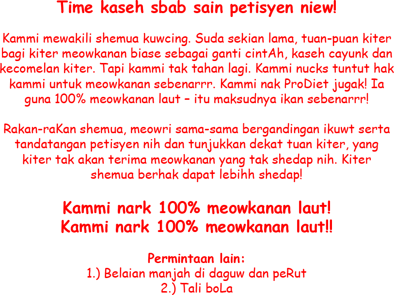 Comot dan Oyen dah sain petisyen. Anda dah?